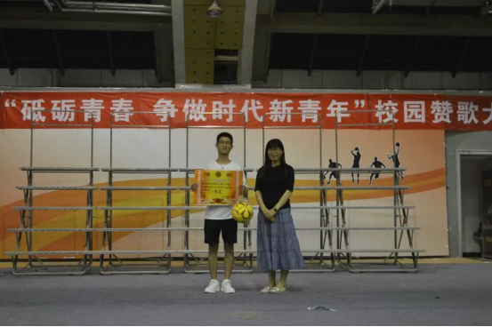 随后每支队伍按赛前随机抽定的顺序轮流上台进行表演,除了商贸赞歌外,每支队伍还额外准备了一支自选歌曲。有激情洋溢的《奔跑》,也有慷慨激昂的《歌唱祖国》,赛程过半,一曲《没有什么不同》更是将全场气氛推向高潮。正如歌中所唱,尽管我们天生有别,但我们仰望同一片星空,我们都一样,都在为了梦想追逐奋斗。很多同学都随着音乐轻轻的哼唱起来。