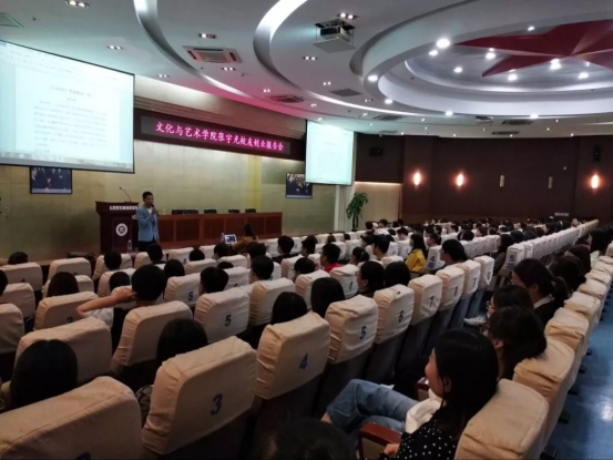 2018年5月9日晚,文化与艺术学院在学术报告厅二楼举行张宇光校友创业报告交流会。会议由我集团学生科邵星宇科长主持。
