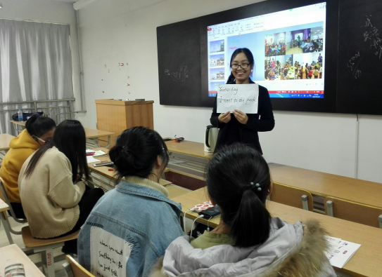 宣讲会上,首先由少儿英语师资项目负责人分析了就业形势及发展趋势,指出英语教育领域人才需求缺口,并针对我集团学生的特点进行了初步的职业规划与设想。随后,对该项目进行了具体介绍,并指出只要是具有较好英语专业基础的应届毕业生,即使无任何少儿英语教学经验,只要想从事少儿英语教学工作,都能通过该项目实现先培训后顶岗就业,培训期间可享受企业生活补助。最后,由项目组的Ada老师为同学们现场展示了少儿英语教育模式,并灵活运用了多媒体技术,且通过有机结合简笔画、肢体语言、游戏组织等的课堂教学实例为同学们呈现了TPR教学法的特色与风采。
