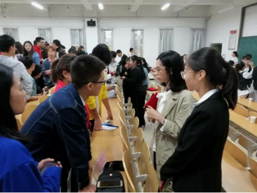 会议结束后学业导师、辅导员、导员助理、新生代表进行了见面会互留了电话号码QQ号码,同学们畅所欲言气氛欢乐融洽,为学生的管理工作打下了良好的基础。