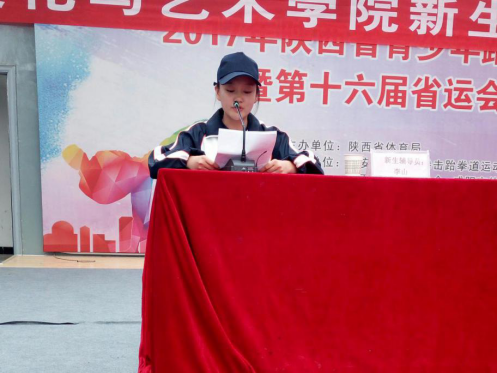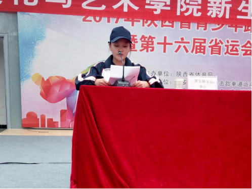 第五项由2017级新生代表英语B1701班吴婵代表新生做表态发言。她表示一定会尽快适应大学环境,规划好自己的人生,树立远大的理想和奋斗目标,在接下来的四年里为自己将来的人生之路打下坚实的基础。