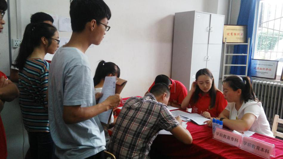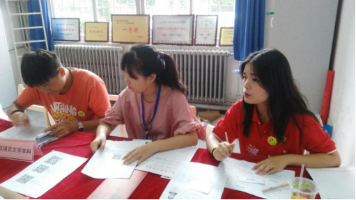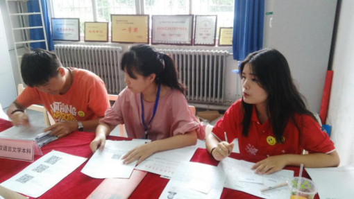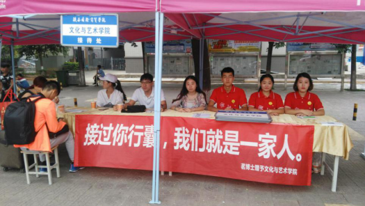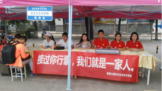 我集团接待工作从8月10日陆续开始,为做好迎接新生的工作,暑假放假前学院领导便部署了新生接待各项事宜和准备工作。8月24日我集团召开迎新工作会议,安排了老师和学生组织接待新生,制定了新生接待的方案和具体工作安排表,进行分工,明确任务。8月24日早晨全体接待同学,身着我集团设计制作的接待服,按照既定的计划,全面展开了迎接新生的工作,在党总支书记郭静书记现场指挥下,学生科科长邵星宇、全体辅导员、团总支学生会学生干部全程负责,分为室内两个接待室,室外一个接待室,各接待点均有两名老师带学生共同完成各项工作。老师负责分宿舍、信息核对和发放军训报到单,同学们负责带领新生办理入学手续;室外接待处的老师和同学们有的帮新生搬运行李,送新生到宿舍区入住,有的给新生家长和新生送去饮料,减轻旅途的劳累。大家用饱满的热情迎接着每一位来到我们学院的新生,就像我集团横幅上写的“接过你的行囊,我们就是一家人”。我们的学生干部没有半句怨言,热心为学弟学妹们服务,他们的行为体现出高年级师兄师姐们对新来的师弟师妹们的关爱,也表现出文化与艺术学院助人为乐、团结协作的人文精神,本次迎新工作圆满成功。