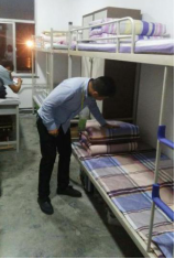 内务整理注重的是细节,更体现了一种良好的素质。教官按军训内务规定对新生宿舍中被子的折叠和位置、床铺整理、生活用品、鞋的规范摆放、室内整体清洁程度提出了严格的要求。教官采用边操作边讲解的方式,指导新生被子如何叠成“豆腐块”、“毛巾要叠两次放在脸盆边上”、“鞋要放整齐,成直线摆放”,“地面要整洁,决不能留卫生死角……”在整个过程中,新生们都表现得积极主动,教官讲解完毕,大家积极行动,马上整改,大家都用实际行动做出了回答。被子从大面包变成了豆腐块,水杯从犬牙交错变成了整齐划一。功夫不负有心人,经过双方的相互配合和共同努力,新生内务整理工作取得显著效果。