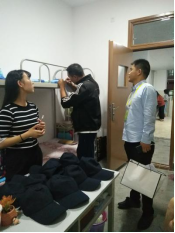 辅导员们亲自动手为学生们指导内务并查宿舍未到同学