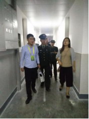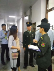 学生科邵星宇科长与教官们检查同学们宿舍内务