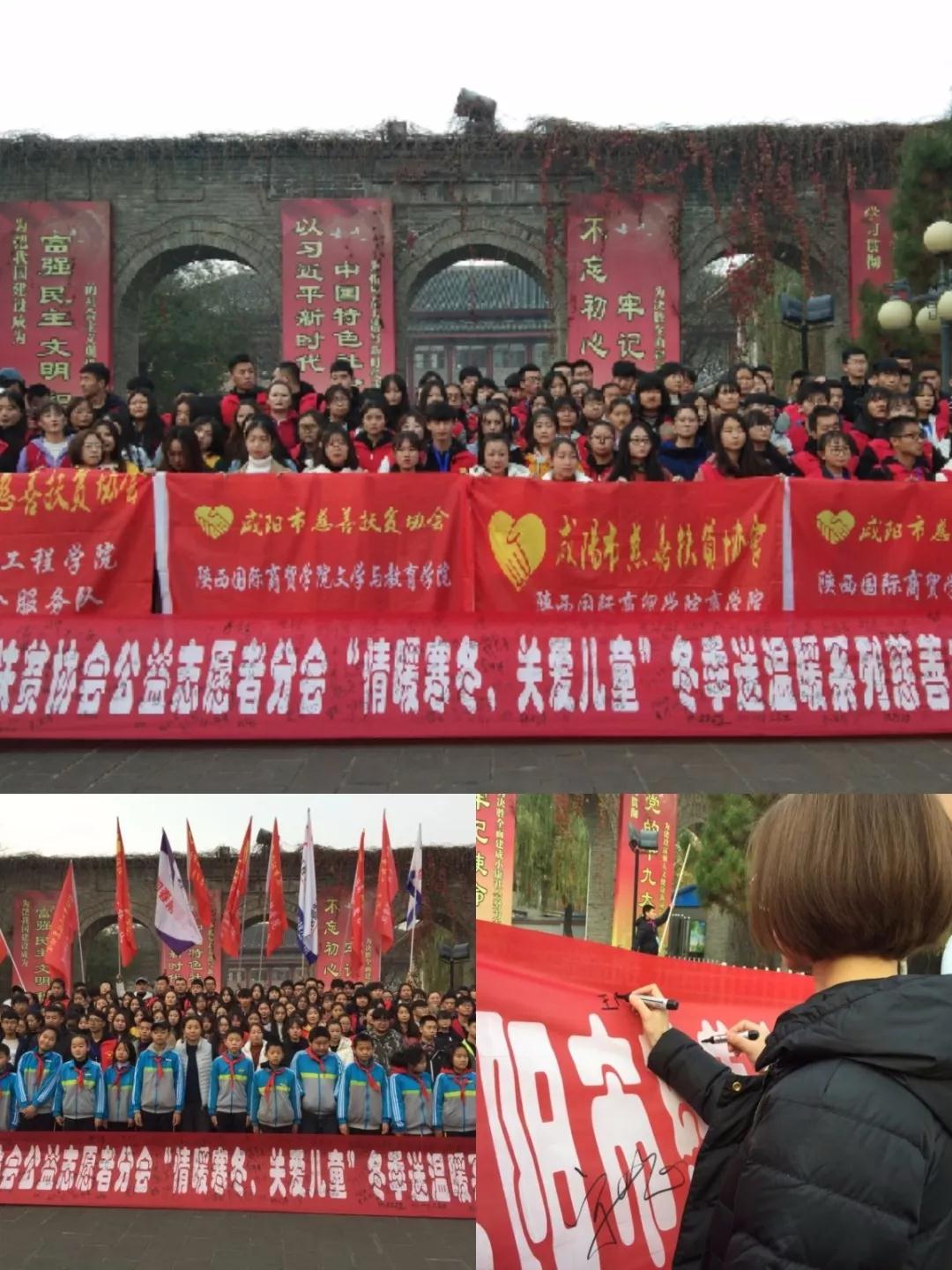 2018年11月24日,太阳成集团tyc122cc团总支的志愿者到达中华广场,参加由咸阳市慈善扶贫协会公益志愿者分会举办的“情暖寒冬,关爱儿童”冬季送温暖活动启动仪式。莅临本次启动仪式的领导及嘉宾有秦都小天鹅学校汤校长,咸阳市慈善扶贫协会公益志愿者分会会长王鹏,常务副会长邵晓天,秘书长任薇,办公室主任助理邵一朵,宣传部副部长阮蔚,组联步部长冯天乐,以及来自各高校的11支志愿者服务队。