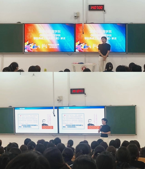 在介绍具体内容时,王娜讲到,学院实施的“学生养成工程”涵盖三个模块,20个好习惯项目。例如在品德方面,注重诚信意识、培养爱国情怀;学业上强调主动自律、时间管理和勤奋好学;性格气质层面则鼓励优化性格、乐观阳光与并培养挫而不倒的优秀品格。她表示,这些习惯的培养不仅关乎个人成长,也契合社会对高素质人才的现实需求。